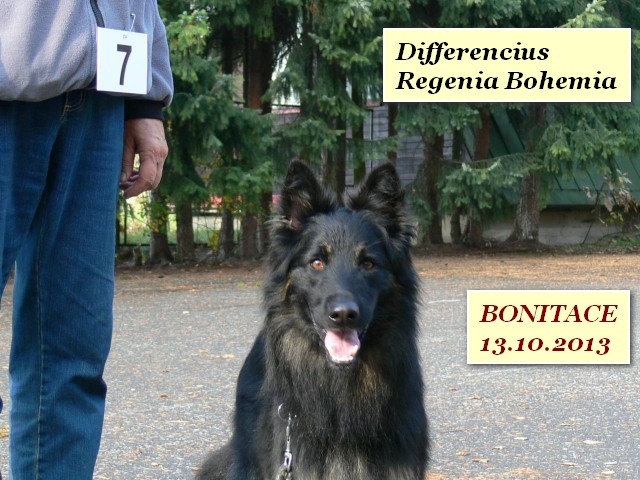Ano, těšte se, už na to mám doklad - od teď jsem CHOVNÝ ! Dnešek začal na naše poměry sakra brzy, už ve 4 ráno jsem seděl v autě a netušil, kam to zas jedeme. Po 300 km ve tmě a mlze jsem před půl osmou vystoupil v autokempu Lučina u Žermanické vodní nádrže, kde zrovna vyšlo sluníčko. Jé, tam to vonělo ..., a co teprve, když se za hodinu začali scházet pejsci :-). Dostali jsme pořadové číslo 7 a pak to začalo: Nejdřív jako hra - pelášil jsem za odhozeným míčkem a samosebou ho přinesl, s každým jsem se chtěl kamarádit, s lidmi i s pejsky, nárazový zvuk na mne neudělal žádný dojem, no prostě všechno o.k. - to bylo hodnocení povahy. Poté mne měřili, zkoumali mi zuby, prohmatávali mě, okukovali a fotili - to byl popis celkového vzhledu. Že mám světlejší oči i znaky, to vím dávno, ale i tak jsem pěknej kluk :-) a aniž jsem to tušil, absolvoval jsem tímto bonitaci.
