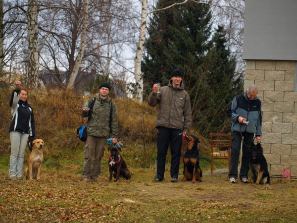 Dnes dopoledne jsem na ploché dráze v Liberci-Pavlovicích absolvoval svůj úplně první závod - soutěžili jsme s ostatními žáčky psí školy PSOLA v základech poslušnosti. Po slabém začátku mi to kupodivu šlo, nějakým zázrakem mi přidělili celkem 54 bodíků ze 60 možných a nakonec to z 15 účastníků bylo celkové 4. místo !!!